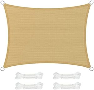 «Toldo Vela Rectangular VOUNOT de 3 x 5 m con Kits de Montaje, Protección UV y Transpirable, para Exteriores, Jardines y Patios en color marfil».