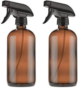 Botellas de Spray vacías de vidrio ámbar Boston de 455 ml (paquete de 2) – Contenedor rellenable con pulverizadores, tapas y etiquetas para aceites esenciales.
