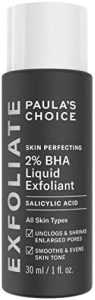 Exfoliante líquido Paula’s Choice SKIN PERFECTING 2% BHA para combatir puntos negros, poros dilatados, espinillas y acné en piel mixta a grasa.