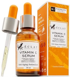 Suero facial antienvejecimiento con ácido hialurónico, retinol, ácido ferúlico, aceite de jojoba, vitamina E y 20% de vitamina C para iluminar la piel.
