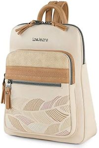 Mochila de marca Lois para mujer con cierre de cremallera y ajuste de tiras. Bolso para iPad 310723 en beige.
