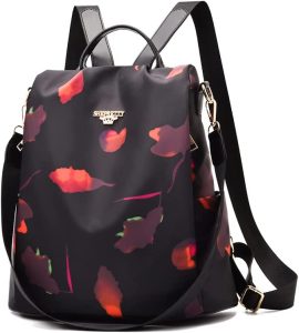 Mochila impermeable elegante para mujer con diseño floral, ideal para viaje y portátil.