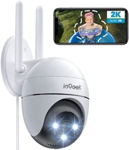 Cámara de seguridad ieGeek 2K para interior y exterior sin cables con batería recargable, impermeable y detección de movimiento. Con audio bidireccional, visión nocturna y PIR.