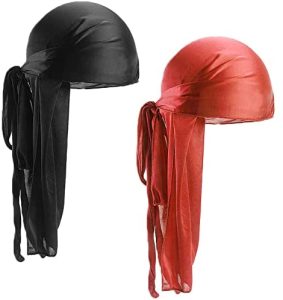 Gorro durag de seda con cola larga, ancho elástico y poliéster sedoso transpirable para unisex.