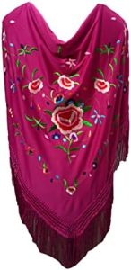 Mantón bordado español para traje flamenco de mujer o niña, tamaño 160 x 80cm.