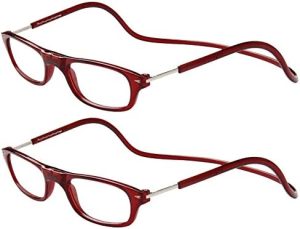 Pack de TBOC: Dos pares de gafas graduadas +2.00 dioptrías con montura burdeos imantada y plegable para hombres y mujeres con presbicia y vista cansada. Perfectas para leer y ver de cerca con lentes de aumento y cuello imán.