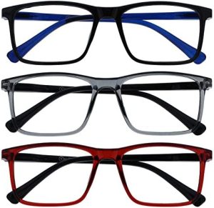 Paquete Opulize Ink 3 con gafas de lectura grandes en negro, gris y rojo para hombres y mujeres con bisagras de resorte RRR4-17Z +1,00.