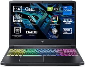 Portátil gaming Acer Predator Helios 300 PH315-54 de 15.6″ IPS Full HD 144 Hz, color negro, Core i7, 32GB RAM, 1TB SSD y GeForce RTX 3060 sin SO.