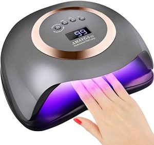 Lámpara LED Profesional AMAYGA de 168W para secado de uñas gel semipermanentes en hogar o salón.