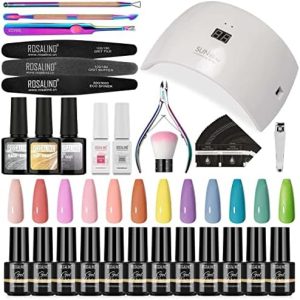 Kit de uñas semipermanentes ROSALIND con lámpara UV LED de 36W, 12 esmaltes en gel y base mate para el Día de San Valentín.