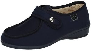 Zapatilla ancha y cómoda con velcro y pala de licra hecha en España.