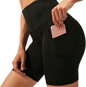 Pantalones deportivos cortos para mujer con bolsillos, cintura alta, cómodos y transpirables, ideales para yoga, ciclismo y fitness.