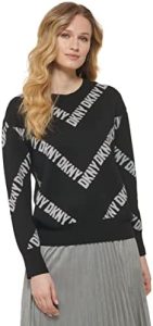 Sudadera de mujer DKNY con manga larga y logotipo completo impreso en la prenda.