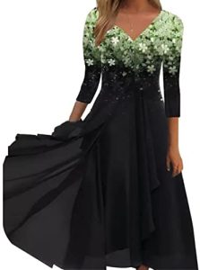 Vestido elegante de mujer con estampado floral en cuello en V retro para ocasiones casuales y festivas.