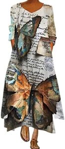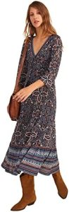 Vestido mujer largo, casual y cómodo de cuello en V con estampado bohemio. Ideal para ocasiones informales.