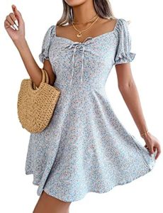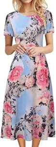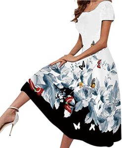 Vestido de mujer para verano y playa, elegante, fresco, bohemio, floral, manga corta y cuello redondo.