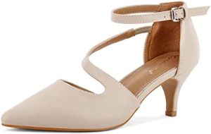 Zapatos de tacón tipo «kitten heel» puntiagudos y con tiras cruzadas para mujer de Greatonu.
