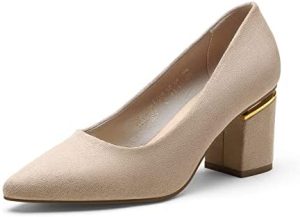 Zapatos de salón de PU clásicos para mujer con punta afilada y tacón ancho de DREAM PAIRS.