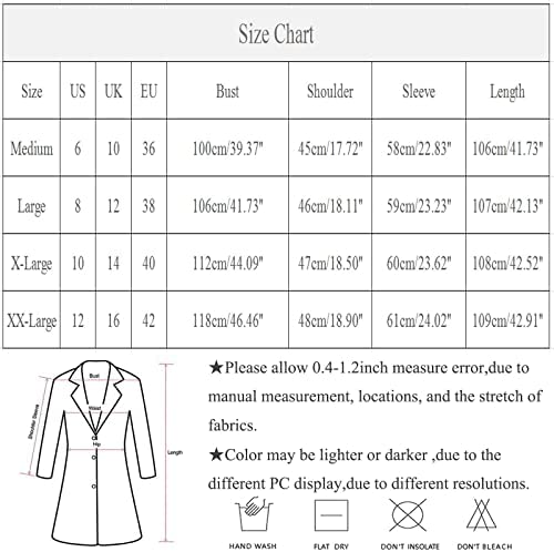 En cuanto a las especificaciones, el abrigo está disponible en diferentes tallas desde la S hasta la XXXL. Esto lo hace perfecto para mujeres de cualquier complexión. El paquete incluye un abrigo de lana de manga larga con botones cruzados.