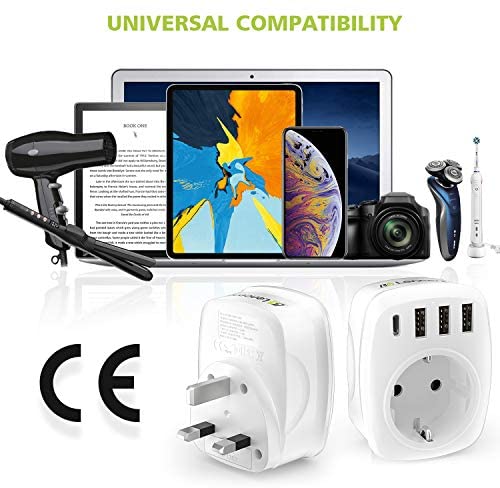 Por ejemplo, el adaptador de enchufe tipo G es compatible en la mayoría de los países extranjeros como Reino Unido, Irlanda, Dubai, Maldivas, Malasia, entre otros. Mientras que el adaptador de viaje 5 en 1 permite cargar hasta 5 dispositivos simultáneamente con alta velocidad y cuenta con un diseño compacto y portátil.