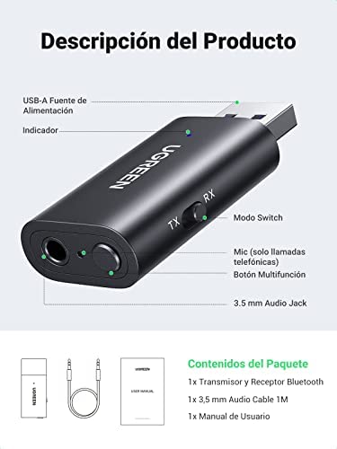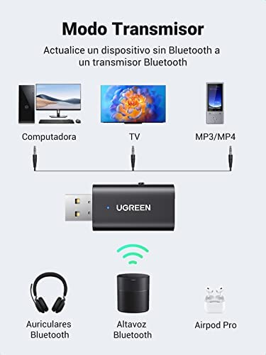 UGREEN presenta su receptor y transmisor bluetooth 2 en 1 con conectividad Bluetooth 5.1, perfecto para disfrutar de la música en casa con alta fidelidad. Además, funciona como transmisor Bluetooth para TV y en modo receptor se puede conectar a móviles o tabletas sin tecnología Bluetooth. Su tamaño compacto lo hace portátil y es compatible con diversos dispositivos.