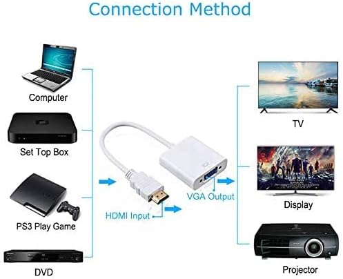Además, el Adaptador de HDMI a VGA es apto para todos los dispositivos de interfaz de salida HDMI y VGA, por lo que puede ser utilizado con una amplia gama de dispositivos, desde computadoras portátiles hasta consolas de videojuegos.