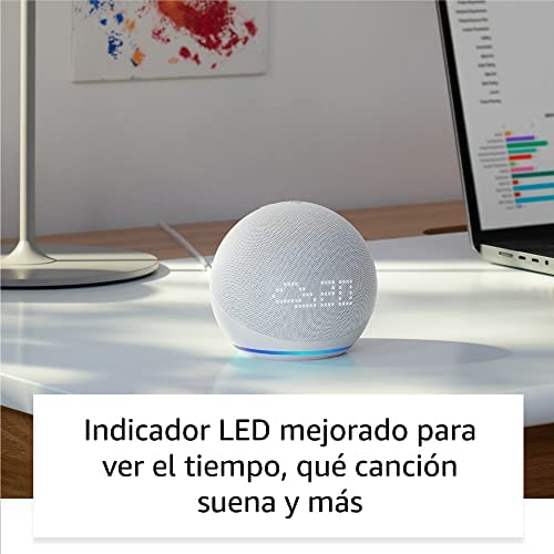 El Echo Dot con reloj y Alexa te permite ver la hora, controlar tu música y dispositivos inteligentes, hacer preguntas y más con un solo toque. Diseñado para proteger tu privacidad y con un alto compromiso de sostenibilidad.