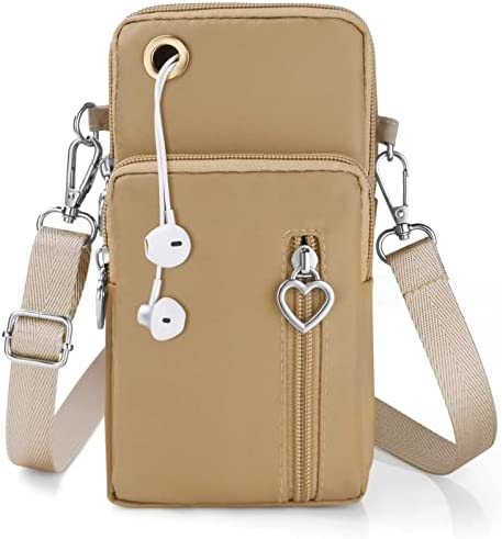 Bandolera de mujer pequeña de nailon, con puerto para auriculares y correa ajustable para móviles hasta 7″.
