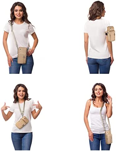 La bolsa para teléfono celular de Aucuu es lo suficientemente grande para la mayoría de los teléfonos inteligentes y cuenta con un diseño de 4 bolsillos para guardar todo lo que se necesita. Viene con una correa para el hombro desmontable y ajustable, muñequeras más anchas y un orificio para los auriculares y es adecuada para una variedad de ocasiones. Es un regalo ideal para los seres queridos.