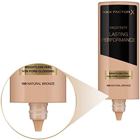 Base líquida de maquillaje Max Factor Lasting Performance en tono 109 Natural Bronze – 35 ml.
