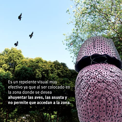 Es importante destacar que se debe cambiar su ubicación de manera regular para evitar que las aves se acostumbren a él y lo tomen por un amigo inofensivo. También se recomienda fijarlo directamente a un poste con clavos para asegurarte de que no salga volando.