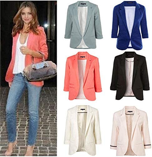 Blazer Elonglin para mujer con frente abierto, manga 3/4 y cuello de solapa, ajustado y casual para la oficina.