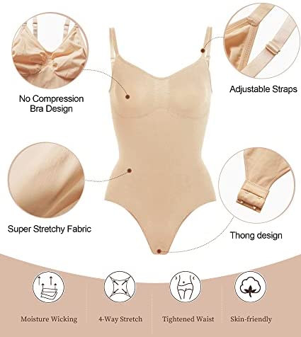 La marca SHAPERX presenta su colección de bodysuits moldeadores hechos de tela suave y elástica, con tirantes ajustables y diseño de sujetador sin compresión. Proporcionan soporte ligero, dan forma al trasero y sujeta el abdomen para realzar la figura natural del cuerpo. Ideal para uso diario, bodas, posparto, trabajo, viajes y fiestas.