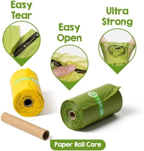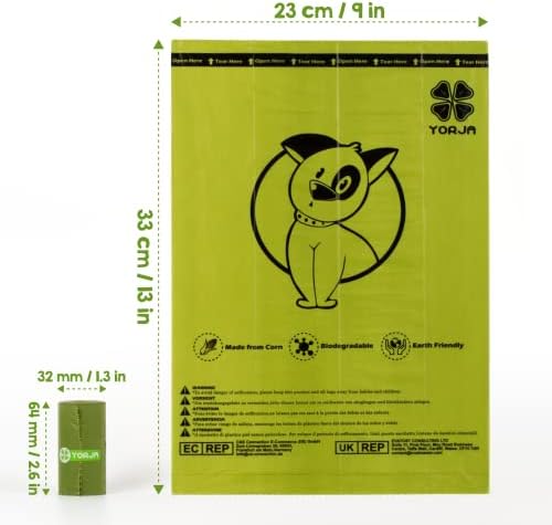 Las bolsas para perros de la marca YORJA son biodegradables y contienen almidón de maíz para reducir la contaminación por plástico. Son de alta calidad y tienen suficiente capacidad para perros grandes. Además, el rollo núcleo es de papel reciclado.
