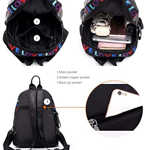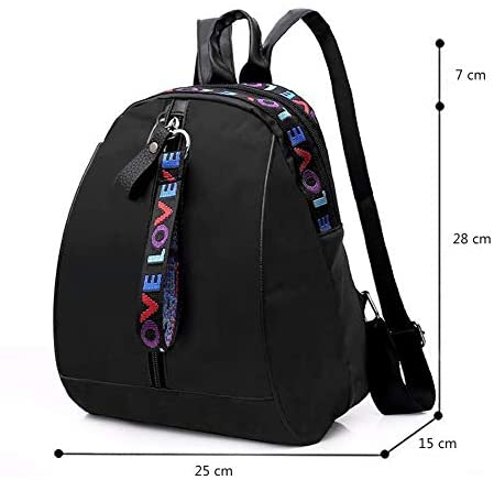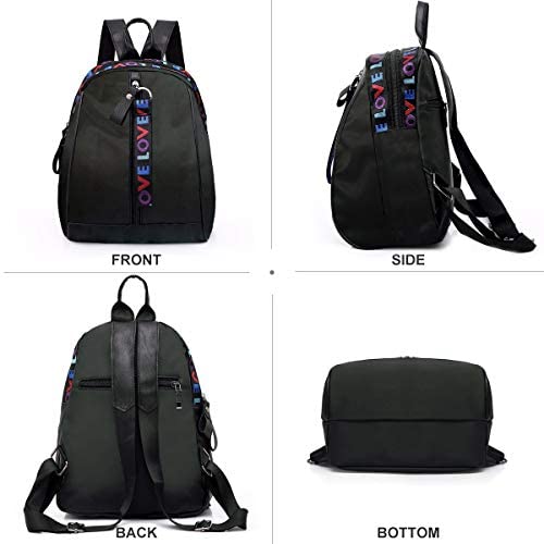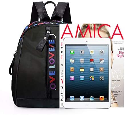 Con sus letras coloridas, la mochila se ve elegante, clásica y con un toque dulce. Si deseas sorprender a tus amigos, novia o esposa, esta mochila podría ser el regalo perfecto. Sus características técnicas también son notables, como su diseño casual pero elegante, color negro, material de tela Oxford, peso de 0,27 kg y tamaño de 28 x 25 x 15 cm.