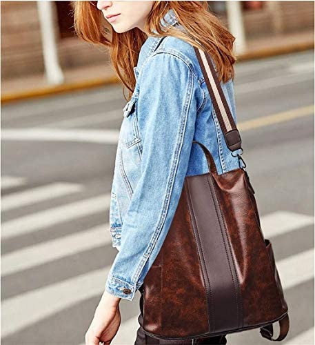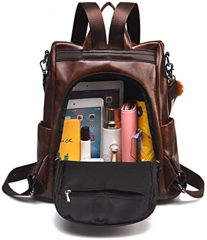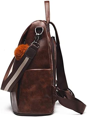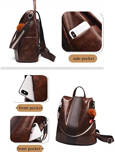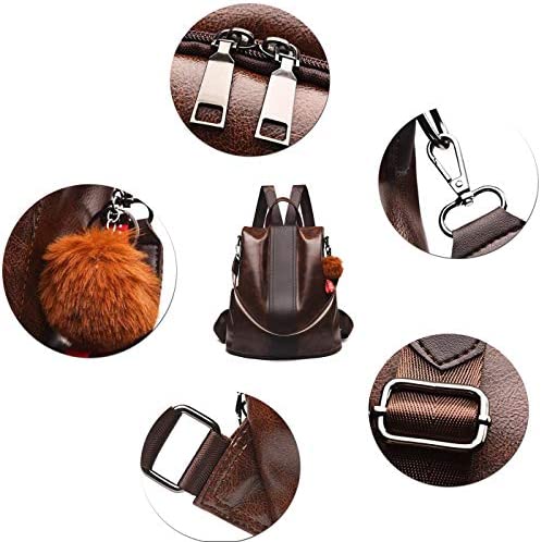 La mochila de tela de cuero es duradera y elegante, pero no es adecuada para laptops. Es apta para todas las edades y ocasiones, con un diseño antirrobo y bolsillos internos y externos. Incluye una correa de hombro desmontable y un oso colgante lindo.