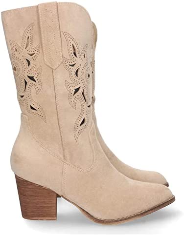 La bota de tacón para mujer con calados en la caña y cierre de cremallera es un producto disponible en Amazon desde enero de 2023. Está hecha de materiales sintéticos y textiles en el revestimiento y suela, tiene un tacón de bloque de 7 cm de altura y está disponible en varios tamaños.