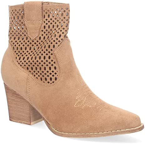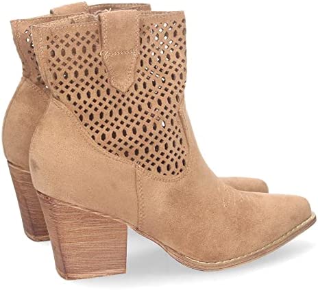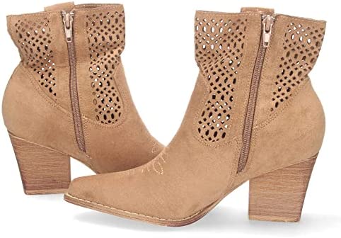 El Botín de Tacon para Mujer, Comodos, de Punta Fina, con Calados, y Cierre de Cremallera, Primavera Verano 2023 cuenta con un tacón de bloque de 7 cm de altura que ofrece una gran estabilidad y comodidad. La punta fina y los calados en el botín le dan un toque elegante y sofisticado, lo que lo hace ideal para combinar con cualquier outfit.