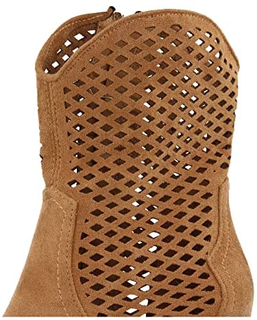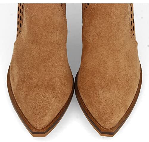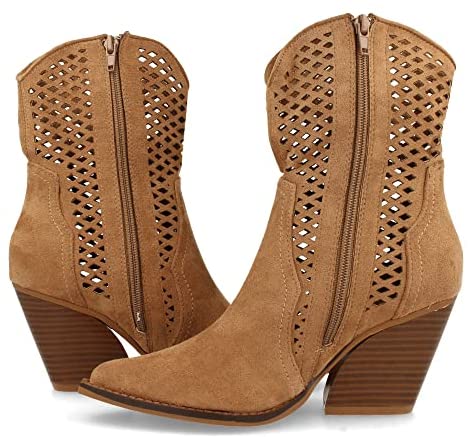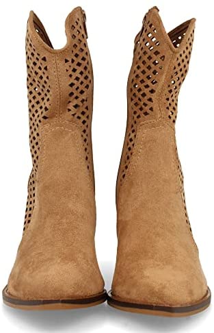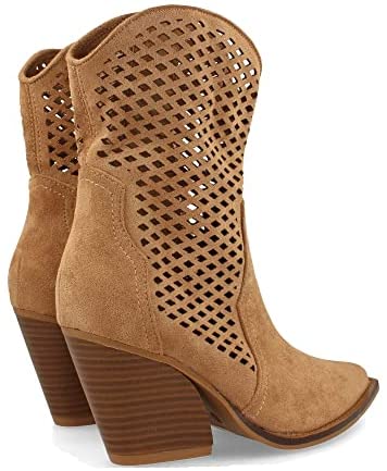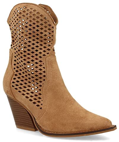 Botines con calados en la caña, cómodos y con tacón cubano de 8 cm. Fabricados con revestimiento textil y sintético, suela sintética y cierre de cremallera. Disponibles en Amazon desde noviembre de 2021 en color beige y en talla 36 para mujer.