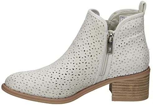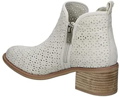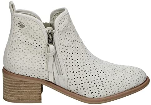 Botines de tacón de mujer de la marca Xti, fabricados en antelina troquelada, con cierre de cremallera y tacón ancho de 5 cm. Certificados veganos por PETA, son ideales para cualquier temporada.