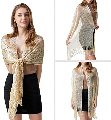 El chal de hilo de poliéster brillante es un accesorio elegante y versátil con múltiples estilos de uso, como bufanda, wrap y chal. Perfecto para cualquier ocasión nocturna o para dar calor adicional en el aire frío. Disponible en Amazon.es.