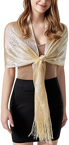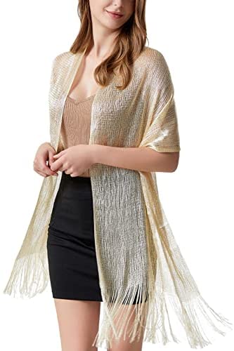 Este chal poliéster brillante con borlas es elegante y llamativo, es un accesorio perfecto para cubrir vestidos de noche y puedes usarlo de múltiples formas.