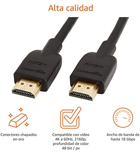 El cable HDMI de alta velocidad de AmazonBasics es la opción perfecta para aquellos que buscan una conexión rápida y segura de alta calidad. Con la interfaz multimedia de alta definición (HDMI) se ha vuelto el estándar para dispositivos digitales de alta definición, el cable HDMI de alta velocidad de AmazonBasics ofrece una conexión sólida para una amplia variedad de dispositivos HDMI, ya sea para conectar un dispositivo móvil, un aparato de home cinema o una videoconsola a una gran pantalla HDTV, un proyector o un monitor de ordenador.