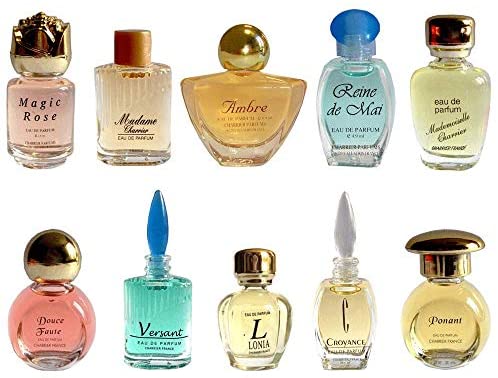 Las fragancias que conforman esta caja de regalo son Magic Rose, Madame Charrier, Lonia, Ambre, Reine de Mai, mlle Charrier, Douce Faute, Ponant, Versant y Croyance. Cada una de ellas tiene su encanto y personalidad, adaptándose a cada gusto y momento específico.