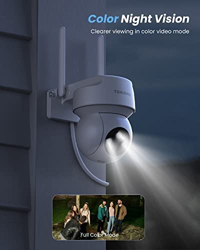 Cámara de vigilancia TOAIOHO 2K WiFi, interior y exterior, con visión nocturna, audio y alerta de movimiento.
