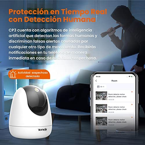 La cámara de vigilancia WiFi de Tenda ofrece una imagen 1080p Full HD y visión nocturna para múltiples vistas. También cuenta con audio bidireccional, alerta de detección humana en tiempo real y modos de privacidad y patrulla. El almacenamiento local y en la nube está disponible.
