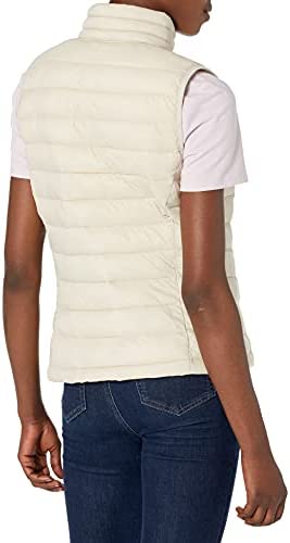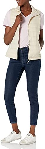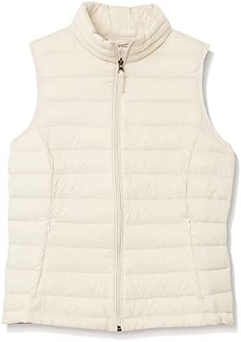 Chaleco acolchado ligero y resistente al agua de la marca Amazon Essentials. Con costuras contorneadas para un ajuste perfecto, bolsillos y cierre de cremallera. Disponible para mujer.