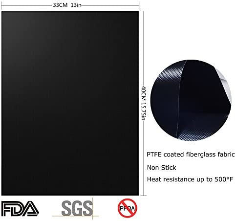 Estas alfombrillas son ideales para todo tipo de alimentos: pollo, huevos, costillas, pescado, verduras, bistec, hamburguesas, cabob, camarones, tocino, sándwiches de queso a la parrilla y más. Los materiales no tóxicos son seguros para todos los alimentos. El material de fibra de vidrio puede entrar en contacto directo con la comida y la comida no se caerá de la parrilla, lo que las hace seguras e higiénicas.