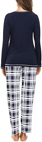 Conjunto de pijama de invierno para mujer de manga larga, hecho de algodón, con pantalones largos, bolsillos y cordón.