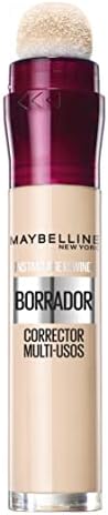 El corrector de ojeras fluido de Maybelline es un producto multiusos que corrige imperfecciones, disimula ojeras e ilumina la piel, mientras atenúa las arrugas para una corrección ultraprecisa con una cobertura uniforme y acabado natural y duradero. Contiene bayas de goji y haloxyl para retrasar el envejecimiento y cuenta con un aplicador de esponja suave para una aplicación precisa. Viene en el tono 00 Ivory y viene en una cantidad de 6 ml.